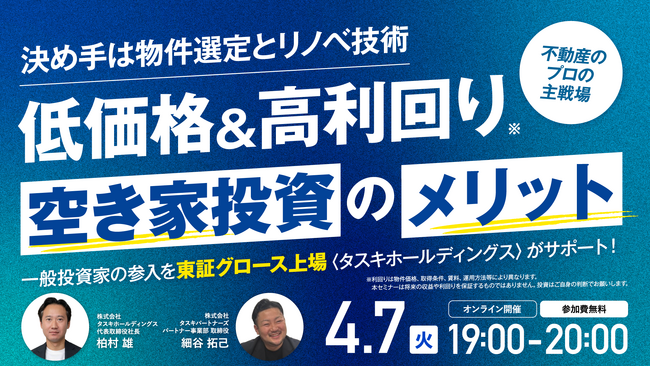 4月7日(火)19時よりオンライン開催!いま注目の「空き家投資」物件選定からリノベ・出口まで上場企業がフルサポート!