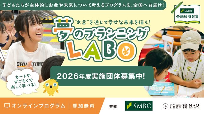 SMBCグループと放課後NPOアフタースクールが協働|小学生向け 金融経済教育 体験型プロジェクト「夢のプランニングLABO」の2026年度実施団体募集を開始