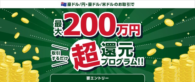 豪ドル/円・豪ドル/米ドルのお取引に応じて、最大200万円をキャッシュバックいたします。