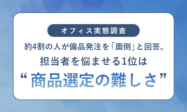 【オフィス実態調査】約4割の人が備品発注を「面倒」と回答。担当者を悩ませる1位は“商品選定の難しさ”