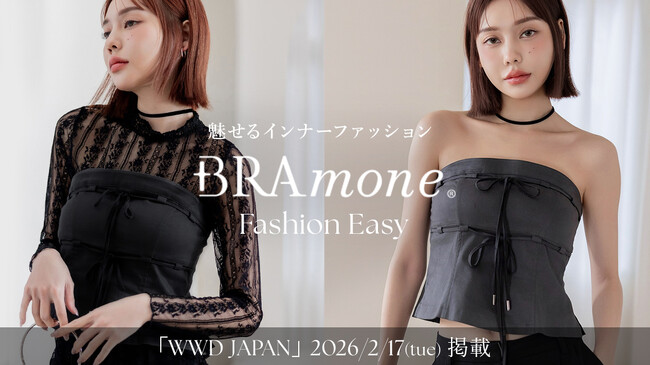 今回発売した《BRAmone Fashion Easy》カップ付きツインリボンビスチェは、1枚で着用しても、ジャケットを羽織っても、モードで洗練された印象を与え、スタイリングとして楽しむことができる「魅せるため」のビスチェです。