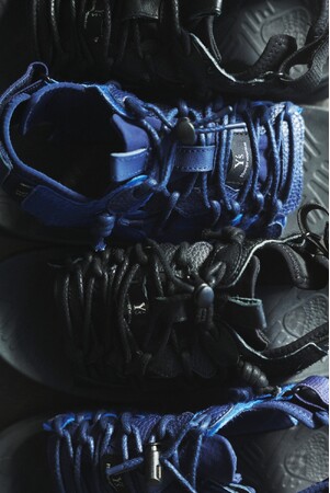 自然モチーフの造形や、手作業の工程が魅力のFlower MOUNTAINのフットウェア「PUMA PUNKU」をベースにデザインされたコラボレーション・シルエット。昨年発表された同モデルを踏襲し、カラーを変更した第2弾として展開する。ブルーとブラックの2色展開。
