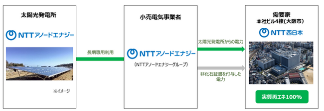 NTT西日本株式会社(本社:大阪府大阪市、代表取締役社長 北村 亮太、以下NTT西日本)は、 サステナビリティ経営の象徴的な取り組みとして、本社ビルにおいてNTTアノードエナジー株式会社(本社:東京都港区、代表取締役社長 岸本 照之、以下NTTアノードエナジー)と連携し、再生可能エネルギー(以下、再エネ)を長期で調達するオフサイト型コーポレートPPA※1(以下、オフサイトPPA)を2026年4月1日(水)より導入を開始します。