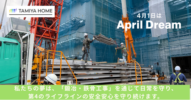 当社は、4月1日を夢を発信する日にしようとするApril Dreamに賛同しています。このプレスリリースは「株式会社タミヤホーム 鍛冶・鉄骨工事事業部(埼玉支店)」の夢です。