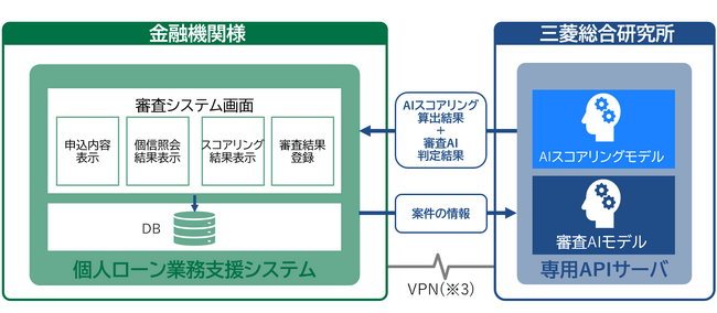 本件は、めぶきフィナンシャルグループで実務適用している「審査AIサービス」のラインナップを拡張する取り組みです。個人ローン業務支援システムからの1回のAPI通信で、「AIスコアリングモデル」による信用リスクの計量結果と、「審査AIモデル」による総合的な諾否判定結果を連携できます。これにより、審査回答のスピード向上や審査判断にかかる工数削減に加え、信用リスク評価とプライシング(金利や保証料の設定)の高度化を一体で支援します。めぶきフィナンシャルグループでは、今回、審査AIサービス導入時に整備した接続基盤を活用することでより効率的な導入を実現しましたが、「AIスコアリングモデル」は単体での導入・利用も可能です。