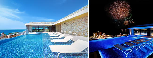 スイートを中心とした40 平米~240 平米の広々とした客室は、全てキッチン、ランドリー、バルコニーを備え、最大4~6 名様まで宿泊可能な全209 室。最上階の18 階にはインフィニティプール、サウナ付スパなどがあり、眼下の街並みと雄大な東シナ海を眺めながら、リゾートならではの心満たすひとときをお過ごしいただけます。