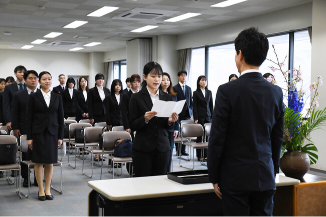 その後、越田謙治郎(こしだ けんじろう)川西市長が訓示を行い、新規採用職員の代表が、宣誓書を読み上げました。