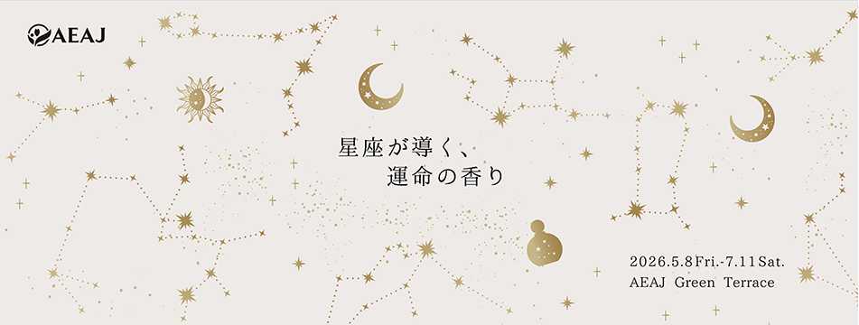 公益社団法人 日本アロマ環境協会(略称AEAJ、東京都渋谷区)は、企画展「星座が導く、運命の香り」を2026年5月8日(金)~7月11日(土)にAEAJグリーンテラスにて開催いたします。12星座別の運勢とアロマの展示に加え、ワークショップや、アロマテラピー占星術の専門家によるアロマ星占いセッションも展開します。