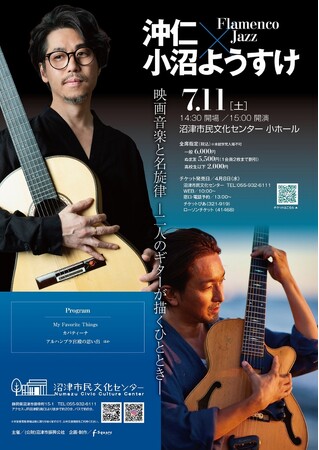 【沼津市民文化センター】心しみわたる、ギターの調べ 世界を魅了する2人のギタリストの響演!『沖仁×小沼ようすけ Flamenco×Jazz』