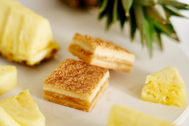 トップにはココナッツをまぶして焼き上げ、香ばしさと軽やかな食感がアクセントとなり、南国らしい風味をより一層引き立てています。