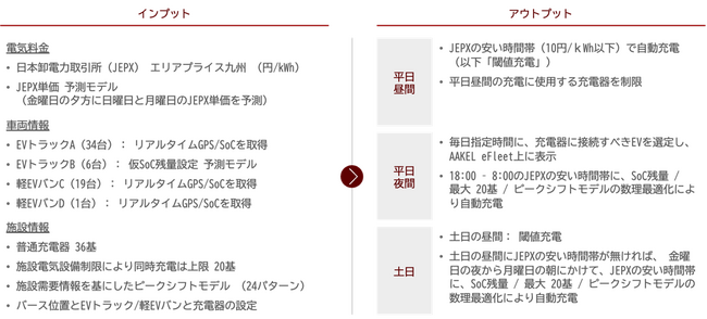 今回、グリーンコープ生協くまもとの北部センター、東部センターに追加導入したeFleetは、電力の市場取引価格、車両の充電残量、施設の電力需要をもとに、曜日・時間帯ごとに最適な充電スケジュールを自動制御します。グリーンコープのように商用EVを複数運用する場合の課題として、電気料金の高騰や施設全体の電力需要との調整などが発生しますが、eFleetの各種機能がこれらの課題に対応することで、電気料金の抑制と電力需給の最適化を実現し、持続可能なEV運用を支援します。
