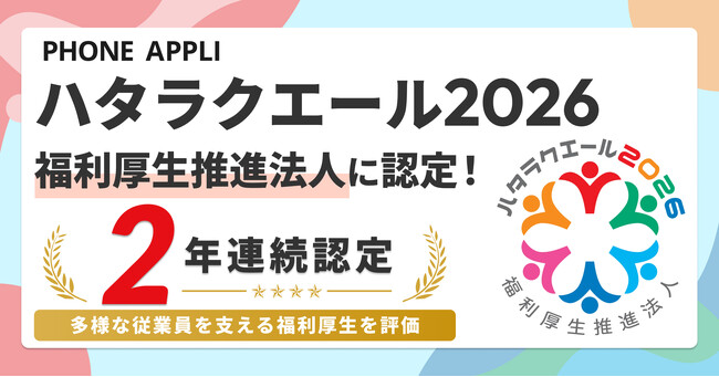 PHONE APPLIが「ハタラクエール2026」福利厚生推進法人に認定!