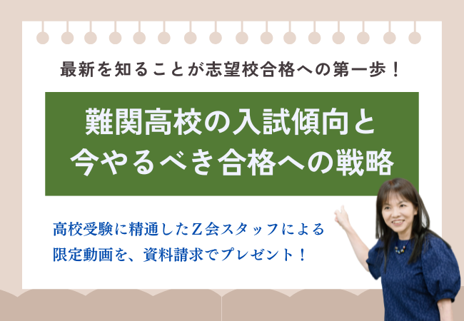 プレゼント内容: 限定特別動画「難関高校の入試傾向と、今やるべき合格への戦略」
