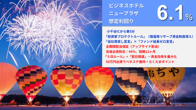 新ファンド公開!『らくたま39号(ビジネスホテルニュープラザ)』4月6日12時より募集開始!