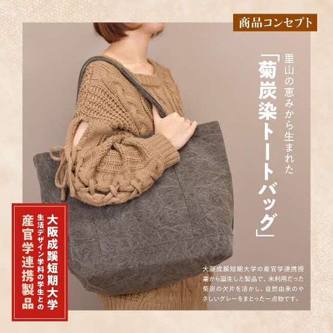 大阪成蹊短期大学と連携 黒川産菊炭で染色したトートバッグを開発 / 兵庫県川西市