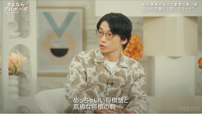 スタジオトークでは、視聴者から寄せられた「私の家族や友人に愛想の悪い彼…これは2人の問題と割り切るべき?」との質問に、スタジオ見届け人が回答。そこで、さや香・新山が自身の義父との付き合いにおける葛藤を明かす一幕も。「将棋で勝ちすぎてしまって…」と語る新山ならではのリアルな悩みとエピソードに、スタジオ陣も大盛り上がりとなります。
