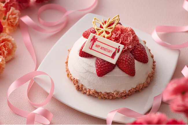 今回、母の日ケーキ「フルール・ド・メール」※に使用しているいちごは、おさぜん農園の「よつぼし」。「よつぼし」は甘味・酸味・風味・美味(コク)の4つが四つ星級に揃った濃厚な味わいが特徴のいちごです。ケーキにはいちごと一緒に、ホワイトチョコで作ったピンク色のカーネーションが華やかに飾られています。パティシエが一つ一つ丁寧に仕上げているため、見た目も美しく、母の日にふさわしい特別なケーキとなっています。また、ケーキの周りにあしらったクランブルが、さくさくとした食感を生み出し、滑らかな生クリームと一緒にお召し上がりいただくことで、新たな食感をお楽しみいただけます。パティシエのこだわりが細部にまで詰まったケーキに、お母さまへの感謝の気持ちを込めて、お届けしませんか。