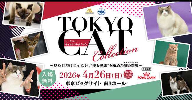 栄養学に基づいて犬と猫の健康を実現する企業(Health Through Nutrition Company)として、プレミアムペットフード および食事療法食を展開するロイヤルカナン ジャポン(本社:東京都港区、社長:日下部 真一、以下、ロイヤルカナン)は、2026年4月26日(日)に東京ビッグサイト(東京都江東区)にて、初開催となるキャットショー「TOKYO CAT COLLECTION(トーキョー キャット コレクション)」(主催:TOKYO CAT COLLECTION実行委員会)に特別協賛いたします。