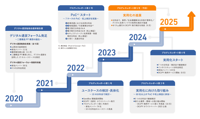 図:DCJPY社会実装に向けたデジタル通貨フォーラムの活動の歩み