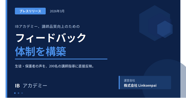 株式会社Linksenpai(所在地:東京都渋谷区、代表取締役:吉田志織)が運営するIB(国際バカロレア)専門オンライン家庭教師サービス「IBアカデミー」は、2026年3月、生徒・保護者からのフィードバックを講師に直接届ける専用体制を導入しました。登録講師数が200名を超えた現在、講師全員が均一に高品質な指導を提供できる環境づくりの一環として実施します。