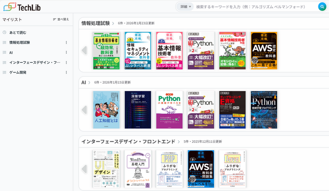 「TechLib」は、プログラミング言語、AI、情報処理資格試験など、ITエンジニアに必要とされる書籍を厳選して提供する月額定額サブスクリプションサービスです 。