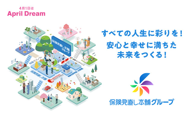 <April Dreamプロジェクト>保険見直し本舗グループは、 誰しもが自由に人生を彩り、安心と幸せに満ちた未来の実現を目指します。