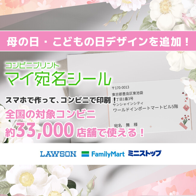 コンビニプリントサービス『マイ宛名シール』で母の日・初節句向けデザインを追加