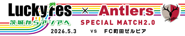 5月3日(日・祝)に行われる明治安田J1百年構想リーグ 地域リーグラウンド EAST 第14節 FC町田ゼルビア戦において、「LuckyFes × ANTLERS SPECIAL MATCH 2.0 ~茨城からアジアへ~」を開催することになりましたので、お知らせいたします。