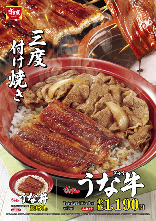 また、すき家のうなぎと、秘伝のタレで煮た牛肉を一度に味わえる「うな牛」も販売します。すき家のこだわりが詰まった一品をご堪能ください。