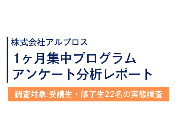 本調査では、アルプロスが提供する「1ヶ月集中プログラム」の受講生・修了生を対象に、受講前の悩み、受講の決め手、および1ヶ月集中プログラム受講後の心理的変化について調査を行いました。