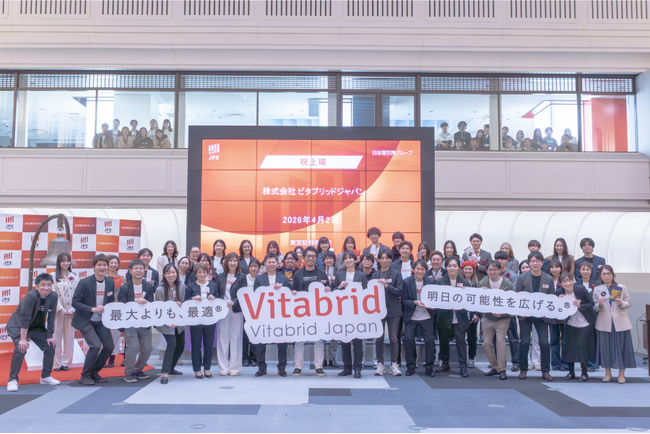 株式会社ビタブリッドジャパン(本社:東京都港区、代表取締役社長CEO:大塚博史)は、2026年4月2日に東京証券取引所グロース市場へ新規上場いたしましたことをお知らせいたします。ここに謹んでご報告申し上げますとともに、創業以来ご支援いただきましたお客様、お取引先様、株主の皆様をはじめとするすべてのステークホルダーの皆様に、心より御礼申し上げます。当社は、「明日の可能性を広げる。(R)」というミッションのもと、人の想いと独自技術を掛け合わせた価値創造を行うD2C企業として、事業を展開してまいりました。「最大よりも最適(R)」という思想に基づき、お客様一人ひとりとのマッチングを重視し、独自企画・独自技術による商品開発と、顧客データを活用したD2Cモデルを通じて、持続的な成長を実現しております。 今後は、上場企業としての社会的責任を自覚し、これまで培ってきた事業基盤と強みを活かしながら、さらなる事業拡大と企業価値の向上に努めてまいります。これまでの皆様のご支援ならびにご厚情に御礼申し上げますと共に、今後とも、変わらぬご支援を賜りますようよろしくお願い申し上げます。