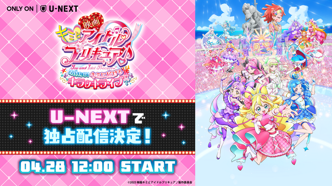 USEN&U-NEXT GROUPの株式会社U-NEXT(本社:東京都品川区、代表取締役社長:堤 天心)が運営する動画配信サービス「U-NEXT」は、2026年4月28日(火)より『映画キミとアイドルプリキュア♪ お待たせ!キミに届けるキラッキライブ!』を独占配信いたします。
