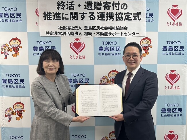 社会課題の解決を目指す団体へ資産を託す「遺贈寄付」の普及を支援する、特定非営利活動法人 相続・不動産サポートセンター(所在地:東京都渋谷区、代表理事:宮川 大輝、以下「当法人」)は、2026年4月、豊島区民社会福祉協議会(以下、豊島区民社協)と「終活・遺贈寄付の推進に関する連携協定」を締結いたします。本協定に基づき、豊島区民の皆様が抱える終活や不動産相続の課題解決、および「遺贈寄付」を通じた社会貢献の支援を強化してまいります。