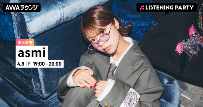 AWA株式会社(本社:東京都港区、代表取締役CEO:冨樫晃己)が運営する、サブスクリプション型(定額制)音楽ストリーミングサービス「AWA(アワ)」は、2026年4月8日(水) 19:00~20:00にて、無料で誰でも参加できるオンライン空間「AWAラウンジ」で、asmiがリアルタイムで登場するリスニングパーティーを開催いたします。