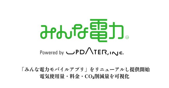 UPDATER、「みんな電力モバイルアプリ」をリニューアルし提供開始!電気使用量・料金・CO2削減量を可視化