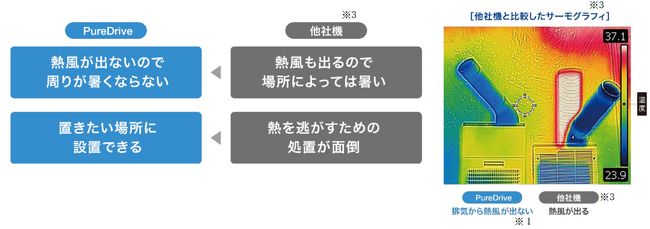 ※3: 他社機とは、ヒートポンプ式による据置型スポットクーラーのこと