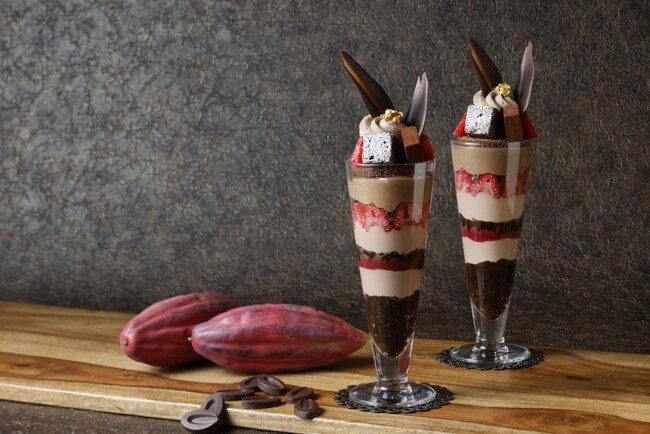 産地ごとの個性を感じながら、濃厚なカカオの風味とベリーの爽やかな酸味が調和する、至福のご褒美パフェです。