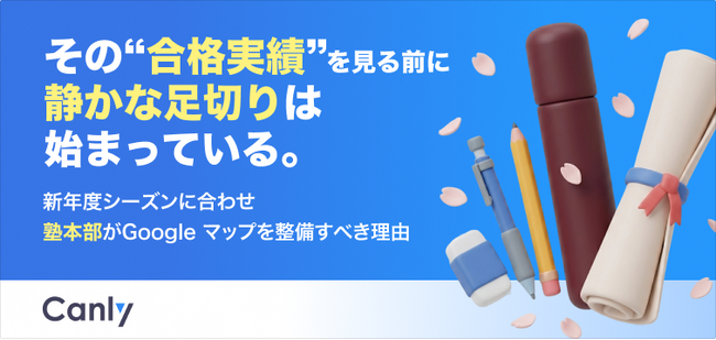 Google ビジネスプロフィール(TM)︎・HP・各SNSの一括管理サービス「カンリー店舗集客」の開発・提供を行う株式会社カンリー(所在地:東京都品川区、代表取締役:辰巳 衛,秋山 祐太朗)は、学習塾業界向けに「その“合格実績” を見る前に静かな足切りは始まっている。 新年度シーズンに合わせ塾本部がGoogle マップを整備すべき理由」を無料公開しましたので、ご案内いたします。