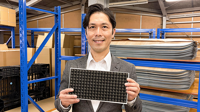 下村は、かつてバイクメーカーにて衝突時の衝撃をやわらげる技術の研究開発に携わっており、その技術を応用し、転倒時の骨折リスクを低減する衝撃吸収フロア&マット『ころやわ(R)』を開発しました。