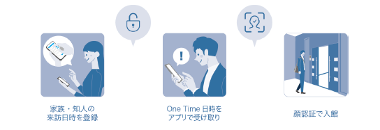 さらに、One Time(鍵貸し)機能により同居しない家族や知人にも鍵を貸し出すことができ、より安全で快適なスマートなマンションライフを実現します。