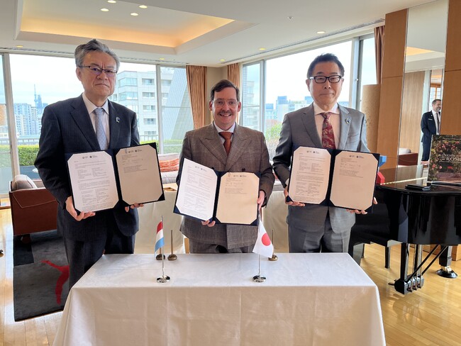 ルクセンブルク大公国とは、駐日ルクセンブルク大公国大使館において、河村正人事務総長と同国の陳列区域政府委員に任命されたミシェル・レーシュ駐日ルクセンブルク大公国特命全権大使が、参加契約書に署名し、博覧会政府委員越川和彦大使が副署しました。同国の出展は、19世紀にバラ輸出国として築いてきた園芸遺産を紹介するとともに、デジタル世界との市民の繋がりが益々増大する現代において、自然と人間が繋がりを続けることが一層重要になっていることを示すものとなります。ルクセンブルク大公国のGREEN×EXPO 2027への参加は、日本との外交関係樹立100周年を祝う佳節となるでしょう。