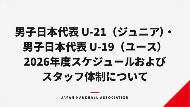 公益財団法人日本ハンドボール協会は、2026年度の男子日本代表アンダー21(U-21)および男子日本代表アンダー19(U-19)のスケジュールならびに代表スタッフ体制について、下記のとおりお知らせいたします。