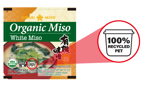 ひかり味噌株式会社※1(長野県諏訪郡下諏訪町、代表取締役社長 林 善博、以下 当社)は、海外輸出用のオーガニック味噌『Organic Miso White 500g』と『Organic Miso Red 500g』の2品について、容器のカップと蓋に100%再生PET樹脂を採用いたします。対象商品には米国向けと欧州向けがあり、米国向け商品は4月より、欧州向け商品は5月より順次出荷を予定しています。これにより、年間で新たに使用されるプラスチック量を約18トン削減できる見込みです(前期出荷実績に基づく当社試算)。飲料業界では100%再生PET樹脂を使用した容器の活用が広がっていますが、味噌容器への採用は業界初※2となります。