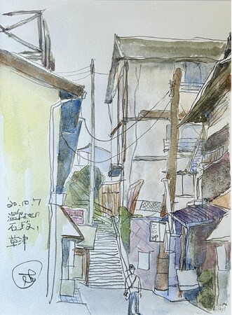 ≪温泉地の石段 草津≫ H290 × W200 mm / 水彩、鉛筆、紙 / 2020年