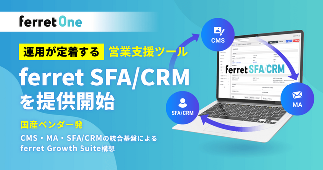 また、本プロダクトは、当社が掲げる「ferret Growth Suite(フェレット グロース スイート)構想」の中核を担うものです。CMS・MA・SFA/CRMをつなぎ、初回接点から営業、運用、改善までを「一つの流れ」として統合することで、日本企業において深刻化している業務とデータの分断を解消します。