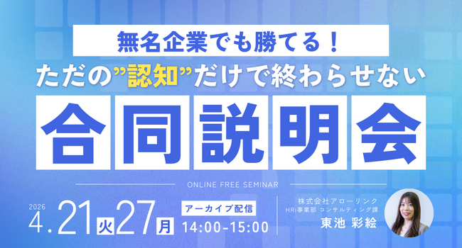 タイトル:無名企業でも勝てる!「認知」だけで終わらせない合同説明会の戦略設計開催日 :A日程:2026年4月21日(火) 14:00-15:00