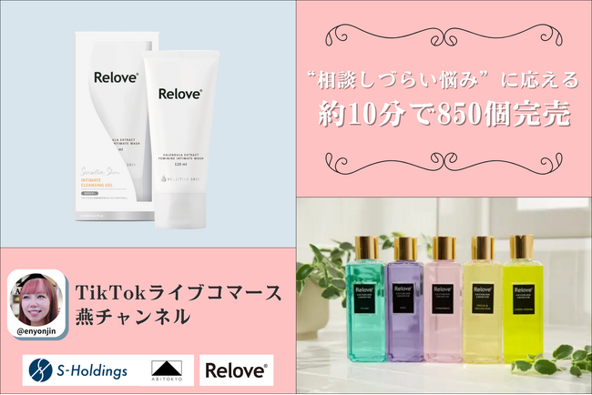 ライブコマース事業、ブランド事業、AI事業などを展開し、日常と未来を彩る最高の体験を創造する株式会社Sホールディングス(本社:東京都品川区、代表取締役CEO: 燕 咏靖)は、当社運営のアパレルブランドABITOKYOが企画・配信するTikTokライブコマース「燕チャンネル」において、2026年3月17日(火)、日本初上陸となる台湾発のフェムケアブランド「Relove(リラブ)」のライブ配信を実施しました。本配信では、約10分で約850点を完売し、売上高約400万円を記録。配信開始直後から注文が集中し、短時間で高い販売実績を創出しました。