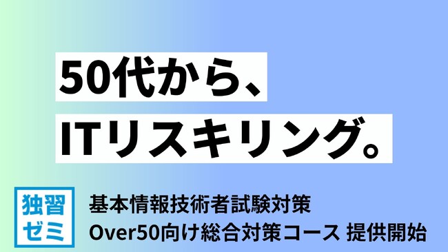 【50代からのリスキリング】基本情報技術者試験対策eラーニング「独習ゼミ」よりOver50向けコースの提供開始