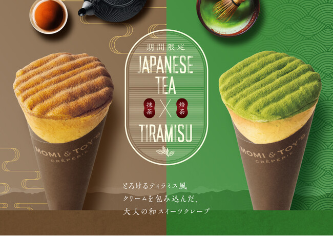 とろけるクレープの MOMI&TOY'S は、香り豊かな抹茶とほうじ茶を使用した、ティラミスクレープ2種を期間限定で販売いたします