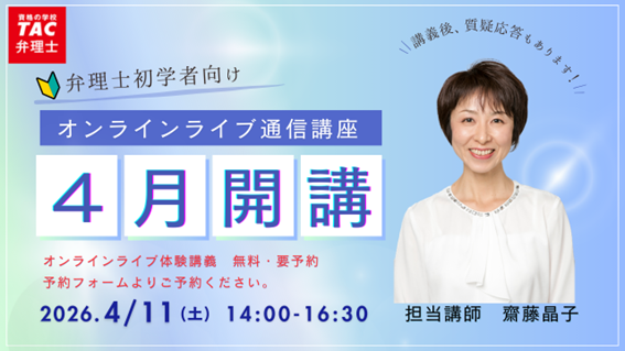【TAC弁理士講座】オンラインライブ通信講座4月生が2026/4/11(土)に開講!無料体験できます。